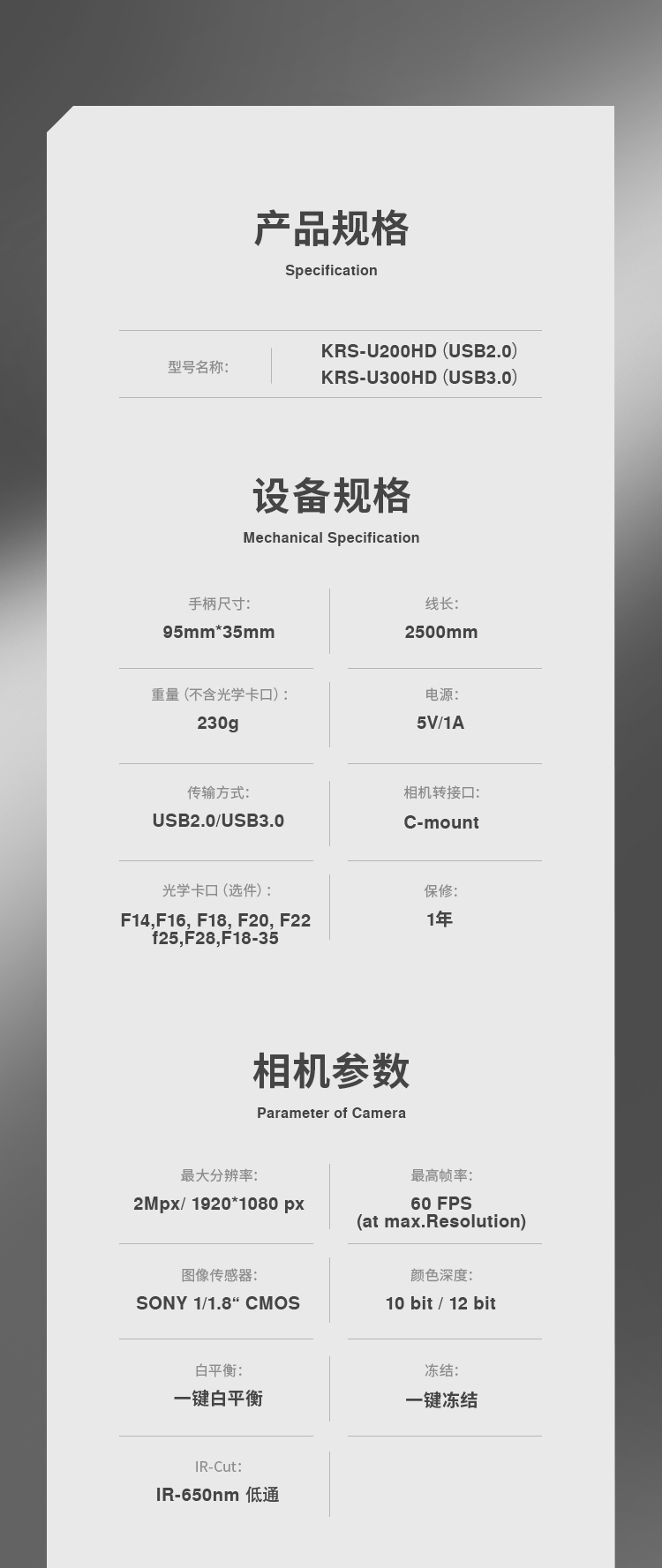 摄像机参数。CMOS具有较好的分辨率,呈现更真实色彩与更清晰组织细节,同时提供更快的聚焦时间与更实时的成像。
